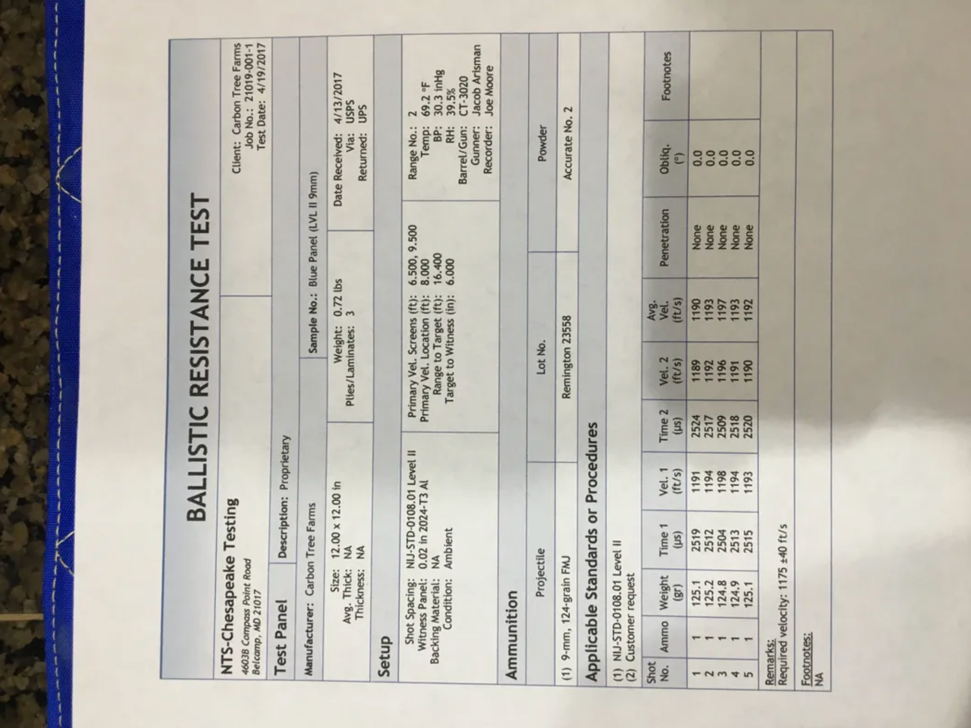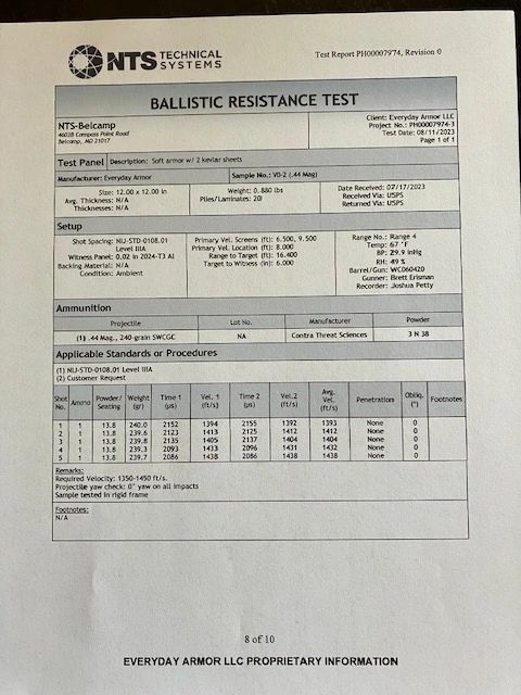The Life Binder is level II which will stop 9MM , .40 Cal, .45 auto, 38 spc, 380 auto, and a snub nose .357 Mag. With the IIIA+ plate the protection level increases to stop AK 47 and AR 15 rounds up to 2750fps which covers most real world scenarios.