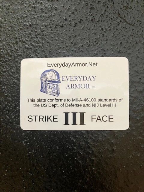 Set of 2 plates. 10 x 12" single curve shooter cut plates. 7.8 lbs each. Coated with rough protective coating to protect plate from rust, not a spall protection layer. Tested at NIJ Lab 5 shots from .308 at around 2750 FPS. Plates are also Mil-A-46100 Certified tested against CAL30APM2 over 2400 FPS