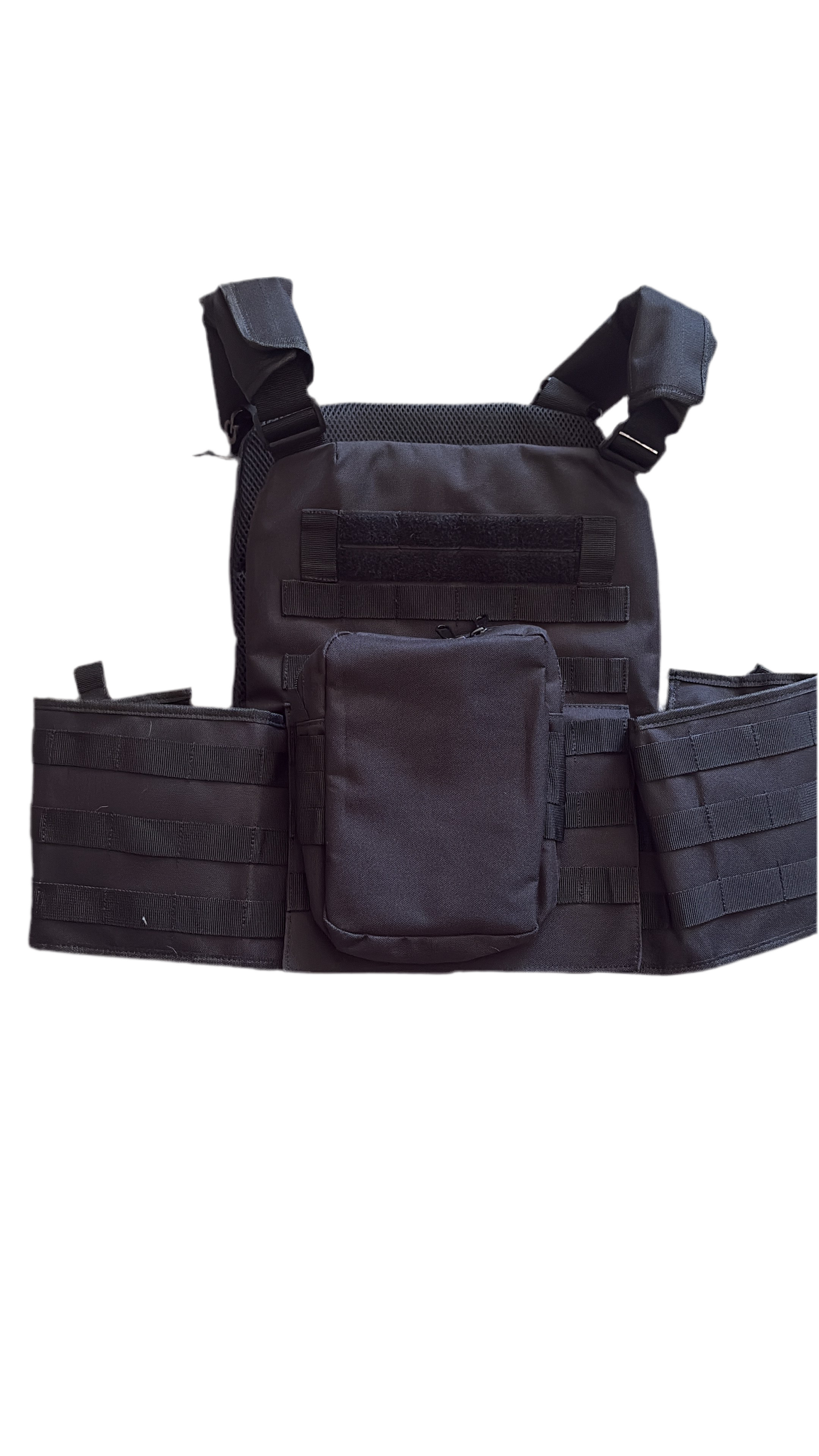 as well as back pouch for first aid/ rope. It has plenty of molle straps to add more pouches to suit your needs. Sides are full fabric but are not equipped to carry side plates.